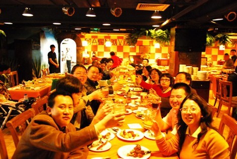員工們坐在一起,難得可以如此放松。